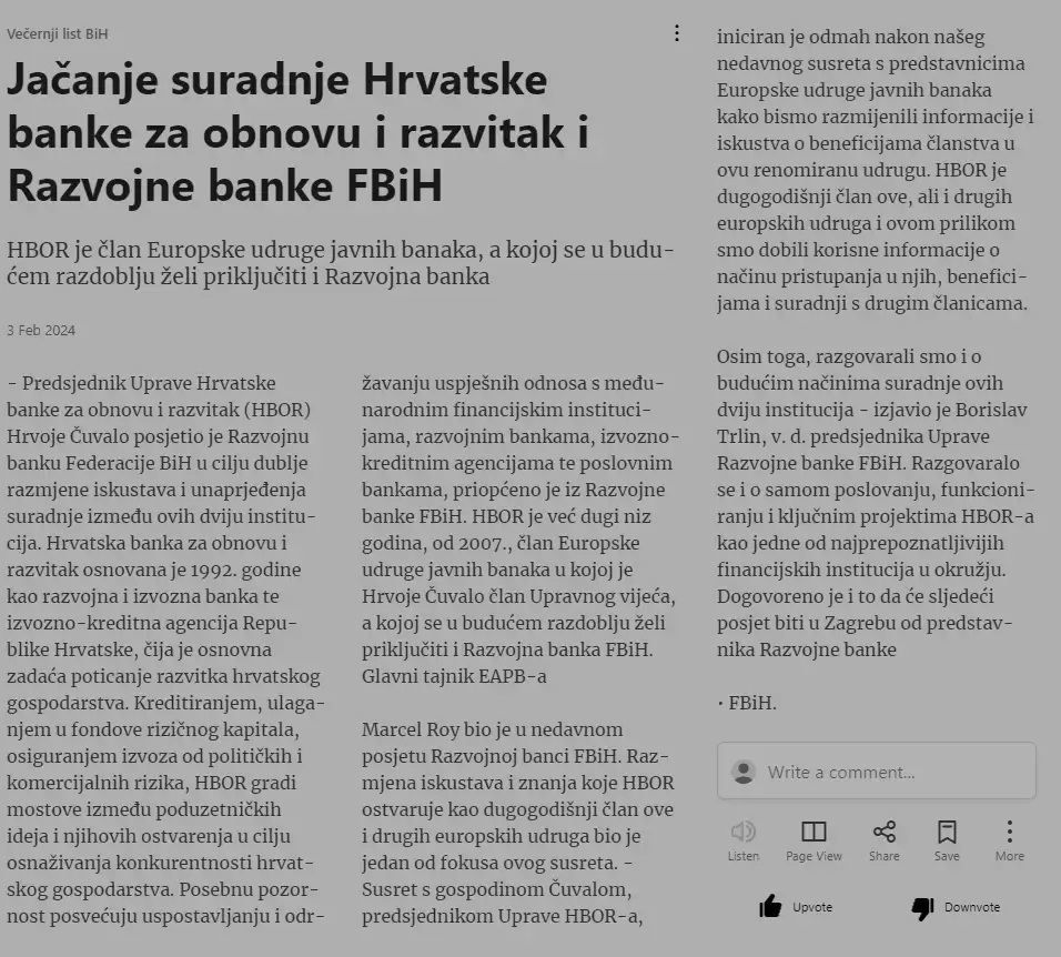 Unapređenje saradnje Hrvatske banke za obnovu i razvitak i Razvojne banke FBiH
